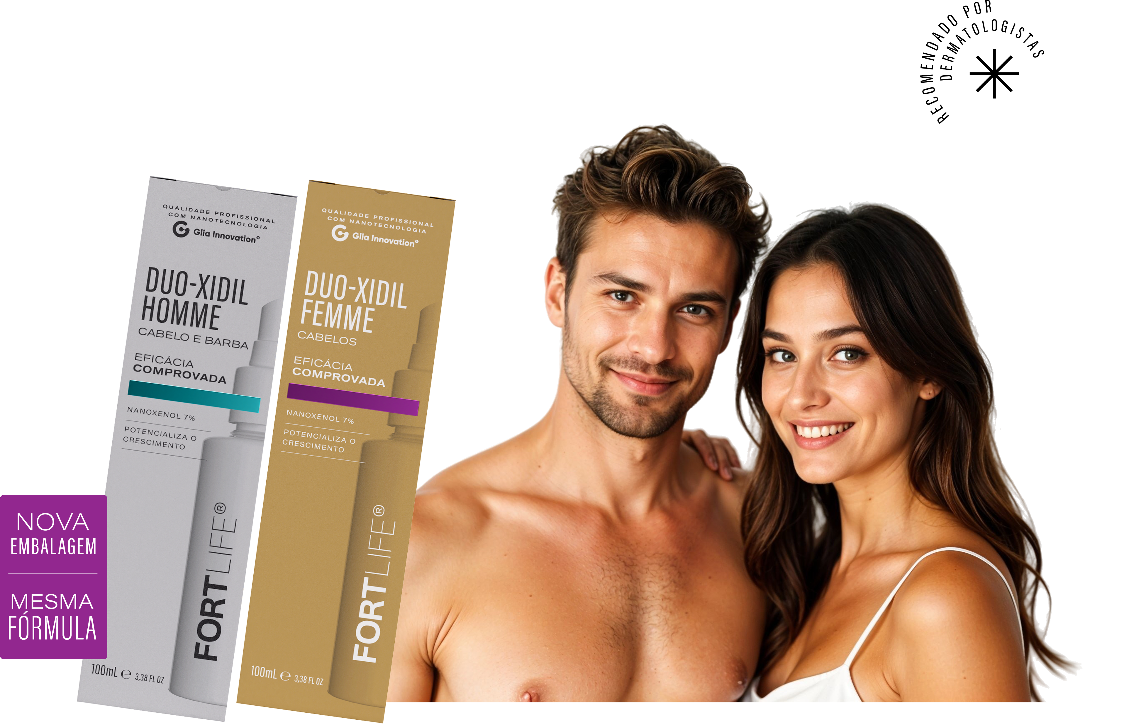 O tônico capilar Duo-Xidil Femme FORTLIFE foi desenvolvido com ativos de alta performance que auxiliam na redução da queda capilar e estimulam o crescimento de fios mais fortes e saudáveis.